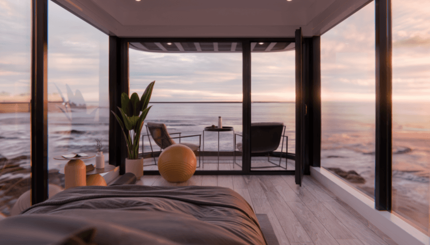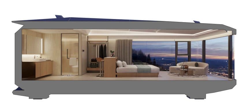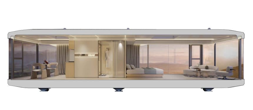 Cada una de sus viviendas cápsula está fabricada con un 60% de materiales reciclables, en una estructura de acero galvanizado de alta resistencia, revestimientos exteriores de aluminio y ventanas con doble y triple vidrio hermético, que garantizan aislamiento térmico, acústico e ignífugo. Su diseño permite instalarlas en contextos como playas o sierras, y su diseño interior le otorga versatilidad para el uso que el proyecto requiera. Mientras las cápsulas están en camino, se prepara el terreno y los servicios para que al llegar solo haya que conectarlas y disfrutar.