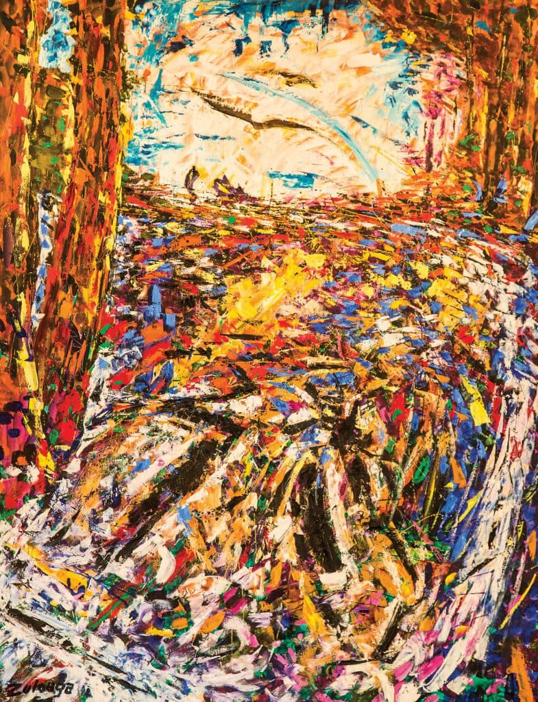 Las figuras distorsionadas y elongadas de este pintor uruguayo, perdido en un mar de color son, sin duda, siluetas cromáticas que recuerdan las imágenes del artista noruego Edvard Munch y las propuestas del grupo COBRA de la Europa post Segunda Guerra Mundial.